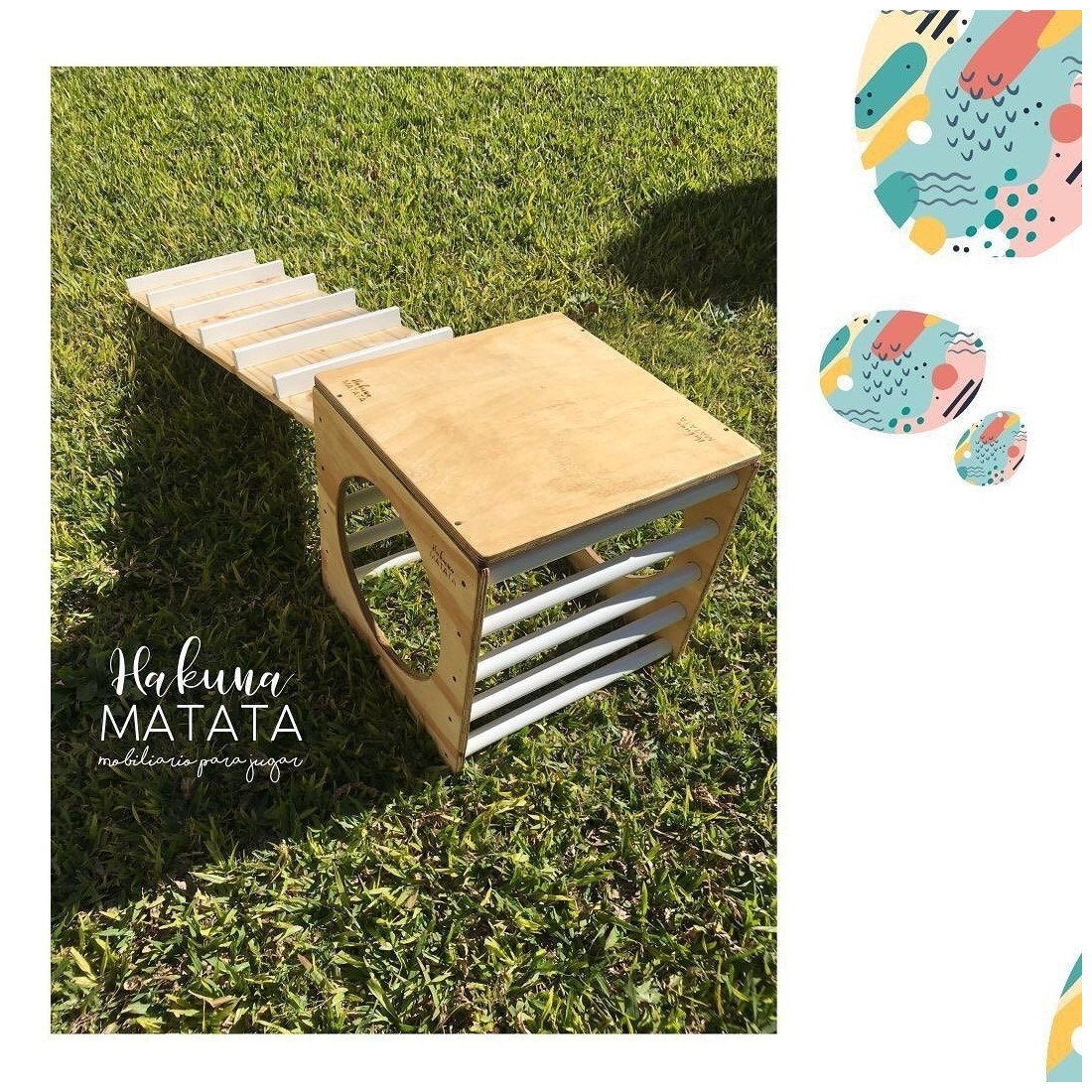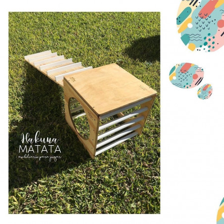 Hakuna Matata es mobiliario de juego inspirado en filosofías Pikler, Montessori y Waldorf. Todos sus productos están fabricados en maderas nobles, tienen sus bordes redondeados para evitar accidentes, y sus terminaciones son con pinturas y lacas no tóxicas, para posibilitar que niños y niñas jueguen de forma segura.