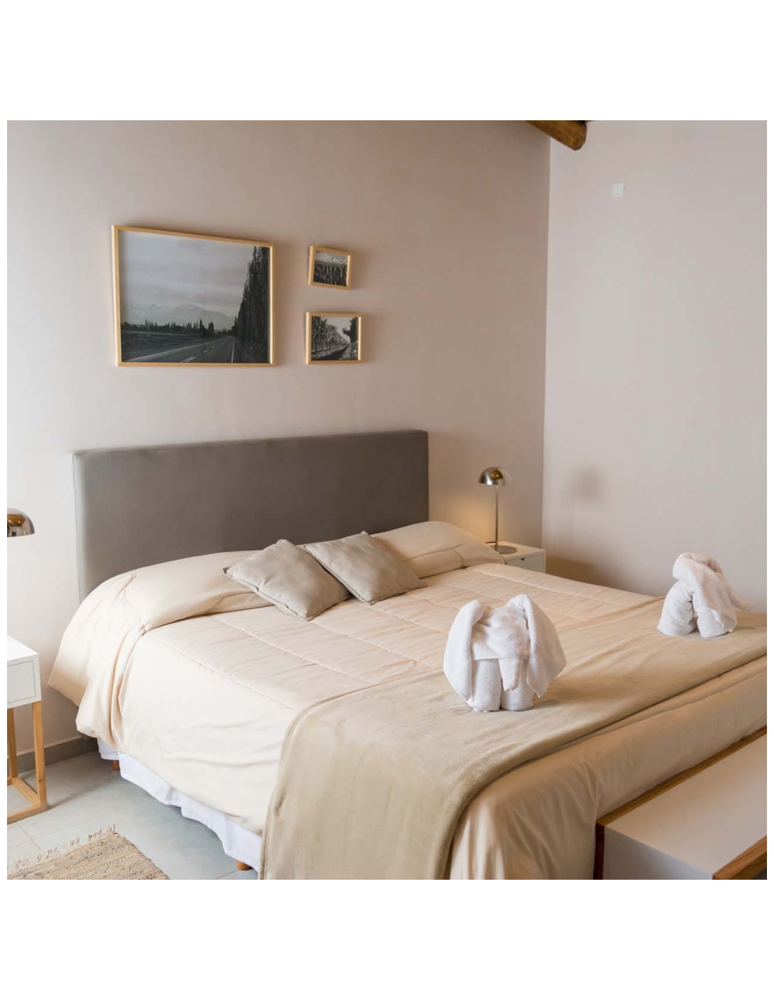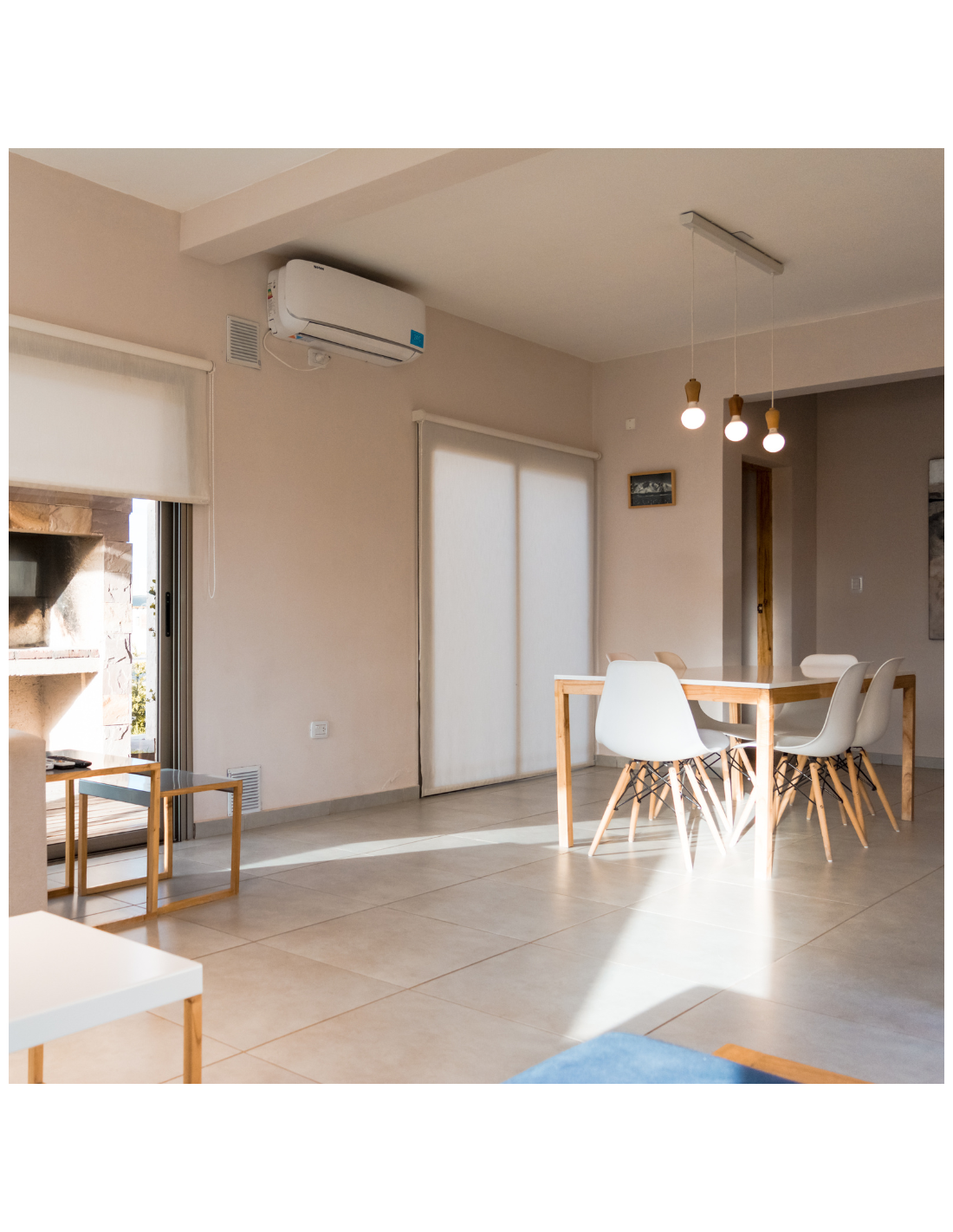 Cada chalet tiene 3 dormitorios, 2 baños, cocina completamente equipada, living-comedor, deck con parrilla individual, cochera individual en el chalet y conexión WIFI 20 MB individual por chalet. Los mismos están separados en parcelas de 3 chalet con un quincho abierto y una piscina que sólo comparten entre los 3 chalet.